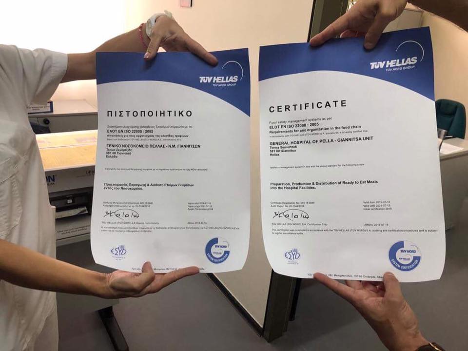 Συμβάλλαμε στην απόκτηση πιστοποίησης ISO του του τμήματος διατροφής του νοσοκομείου μας των Γιαννιτσών