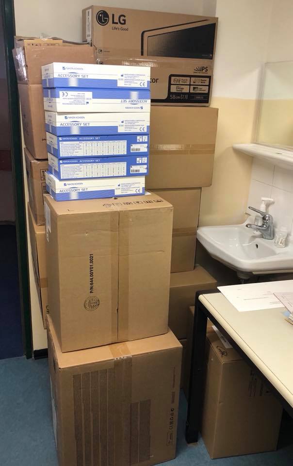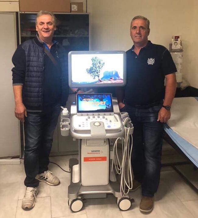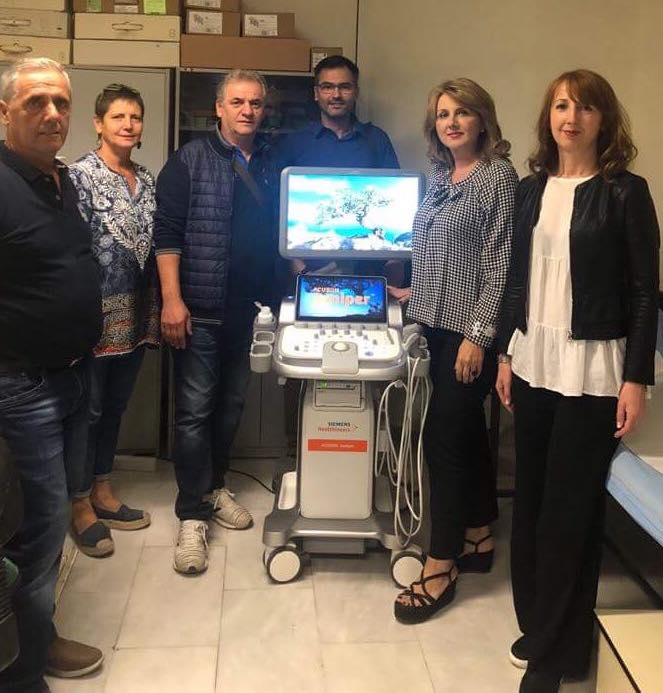 stand inox χαρτογράφησης του νοσοκομείου για τις τρεις εισοδους ΤΕΠ Κεντρική και τακτικών, 40 σφουγγαρίστρες ακολουθούν ένα πολυμηχάνημα scaner φωτοτυπικό φαξ 300€ μια ενεργοπαθητική πεταλιέρα για τους φυσικοθεραπευτές στην ΜΕΘ 800€ και βέβαια ακολουθει η μεγάλη δωρεά των 100000€ προς την καρδιολογική και το ακτινολογικό τμήμα.